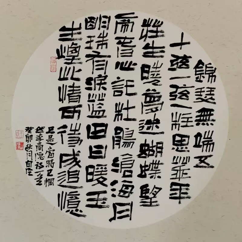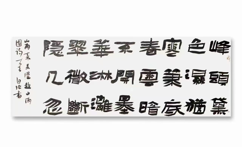 王自強的隸書植根于《西狹頌》的金石氣,又融入個人創新。他的作品《李白古風其一》在2021年“中國書法·年展”中脫穎而出,以古樸厚重的筆法、靈動多變的章法,位列全國前51名,成為成縣首位躋身國家級書法大展的藝術家。2025年,他的隸書作品再次入選全國第五屆隸書作品展,在15214件投稿中脫穎而出,展現出對漢隸藝術的深刻理解與創新表達。