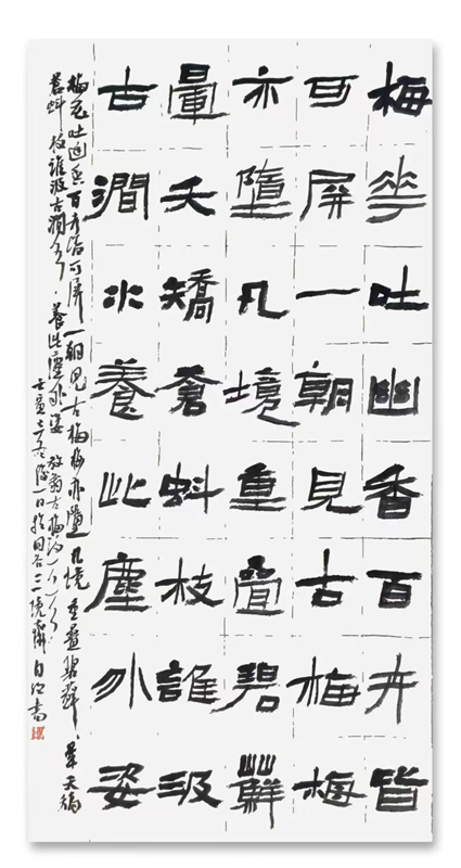 近年來,王自強的創作逐漸從具象走向意象。他嘗試將工筆畫的細膩與隸書的厚重結合,在《荷塘清韻》等作品中,荷葉的墨色層次與書法的線條韻律相互映襯,形成“書畫同源”的藝術境界,這種對書法藝術的探索精神不僅得到業界認可,而且得到了社會的廣泛認同。