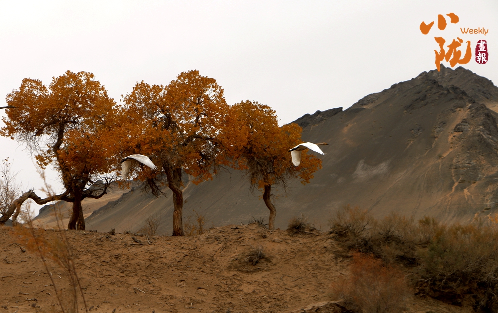 沙漠四周綠意盎然,這些綠洲不僅是胡楊的家園,也是駱駝、沙蜥等野生動物的棲息地。同時,這片綠洲還維系著當地牧民的傳統生活方式,構成了人與自然和諧共生的獨特圖景。